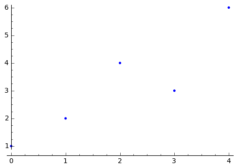 # データを点でプロット list_plot([1, 2, 4, 3, 6])